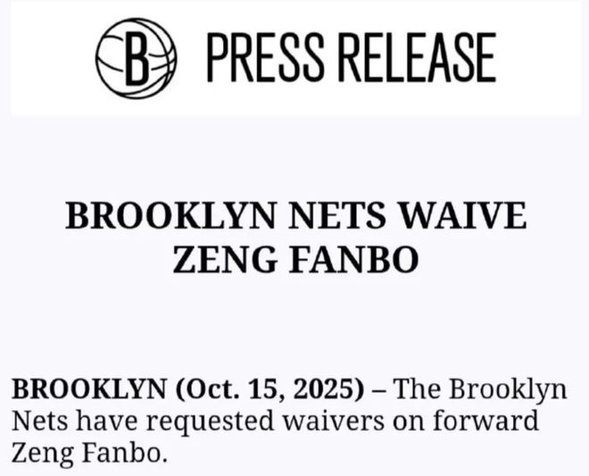 正式宣布裁员!曾凡博告别篮网队,还要去美国!